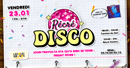 Après le succès de Villefranche, L’École des Grands s’installe à Belleville-en-Beaujolais pour faire vibrer la région au rythme de la convivialité et de l’émotion. C’est ici que vous trouverez le plus grand restaurant festif de notre réseau : un espace entièrement pensé pour manger, trinquer, s’amuser, danser, se regrouper et vibrer.