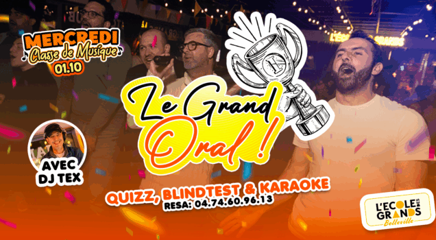 Rejoignez-nous chaque mercredi soir pour Le grand oral : un mélange unique de quiz, blind test et karaoké dans une ambiance conviviale et chaleureuse !