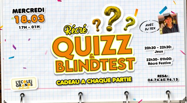 20h30 – 22h30 : Quizz & Blindtest – des cadeaux à gagner à chaque partie