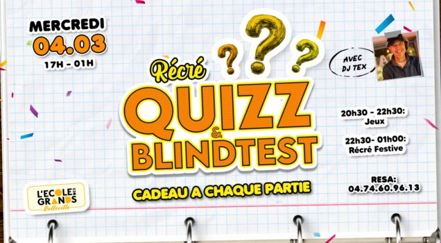 20h30 – 22h30 : Quizz & Blindtest – des cadeaux à gagner à chaque partie
