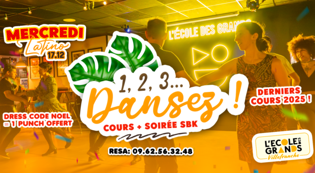 Plonge dans l’esprit des fêtes et termine l’année en beauté ! Ce mercredi, L’École des Grands Villefranche t’invite à une soirée latino spéciale Noël : danse, ambiance festive et bonne humeur garanties.