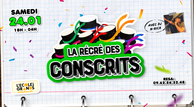Samedi, c’est La Récré des Conscrits : resto, danse et ambiance festive pour prolonger ton week-end comme il se doit !