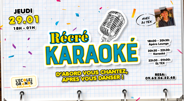 20h30 – 22h30 : Karaoké – Monte sur scène et fais vibrer le public !