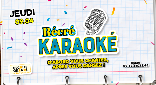 Envie de lâcher prise après le boulot ? Le jeudi, viens chanter, danser et t’amuser à L’école des grands avec DJ Tex ! Entre apéro, karaoké et ambiance festive, prépare-toi à passer une soirée pleine de bonne humeur et de fous rires.