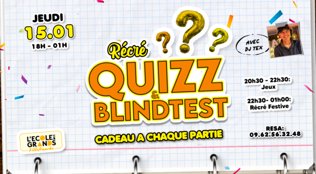 Jeudi, c’est La Récré Quizz & Blindtest : jeux, musique et ambiance festive pour prolonger la semaine dans la bonne humeur !